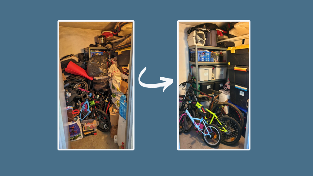 Mon client avait accumulé tout un tas d’objets et de matériels divers dans ce petit espace. Il n’avait plus accès à rien et ne savait même plus ce que contenaient toutes les caisses. Nous avons tout sorti pour trier et désencombrer. Il a donné et vendu beaucoup de choses. Au final, la cave est bien dégagée maintenant. Tout a bien été étiqueté dans les caisses et est facilement accessible.