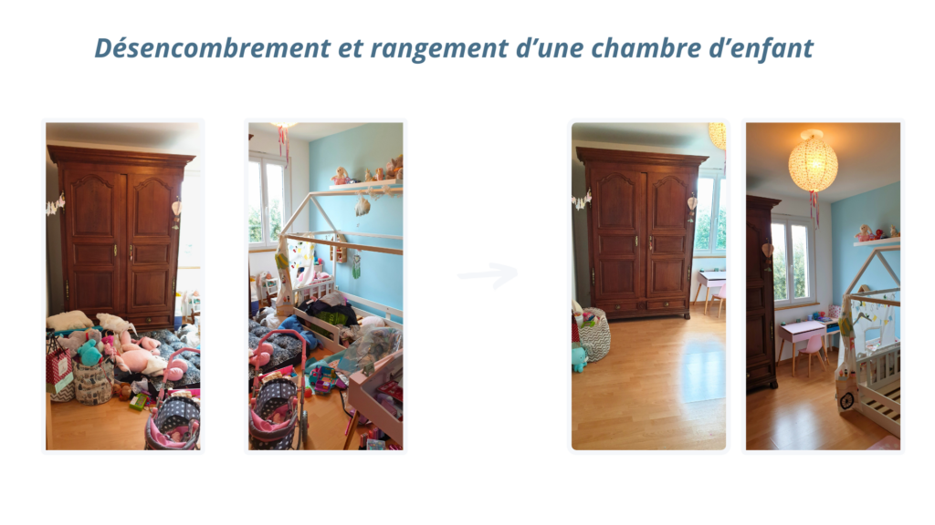 Pour redonner envie à sa fille de réinvestir sa chambre, je l’ai impliquée dans la phase de tri. Elle a trié tous les jouets, peluches et vêtements qu’elle ne voulait plus et nous avons tout bien réorganisé, avec notamment un coin bureau pour qu’elle ait envie d’y passer du temps.